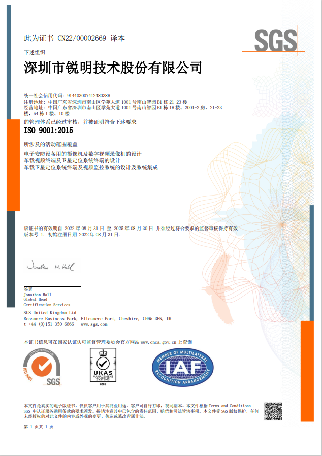 銳明技術(shù)(股票代碼002970)創(chuàng)立于2002年,現(xiàn)為深圳證券交易所主板上市企業(yè),是以人工智能和視頻技術(shù)為核心,專注于商用車的安全、合規(guī)和效率提升的AIOT智能物聯(lián)解決方案提供商。截至目前,銳明技術(shù)在深圳、重慶、北京、成都等地均設(shè)有技術(shù)研發(fā)中心。 公司以深圳為中心,輻射國內(nèi)30多個省市以及北美、歐洲、中東等地,建立起以子公司、辦事處等為載體的營銷和售后服務(wù)體系。產(chǎn)品和解決方案廣泛應(yīng)用于全球100多個國家和地區(qū),成功為北京奧運會、上海世博會、全國兩會、卡塔爾世界杯、成都大運會、北京公交、成都公交、深圳出租、美國校車、土耳其出租、印度公交、厄瓜多爾綜合交通等大型交通安保項目提供安全保障及信息化服務(wù)。銳明技術(shù)將秉持“成就客戶、追求卓越、持續(xù)創(chuàng)新、團隊合作、開放包容”的核心價值觀。持續(xù)提升服務(wù)能力,努力成為“離客戶最近的科技型企業(yè)”。并將圍繞AI、大數(shù)據(jù)、高清視頻等技術(shù)持續(xù)創(chuàng)新,為構(gòu)筑更安全、高效、有序的美好交通未來不懈努力。